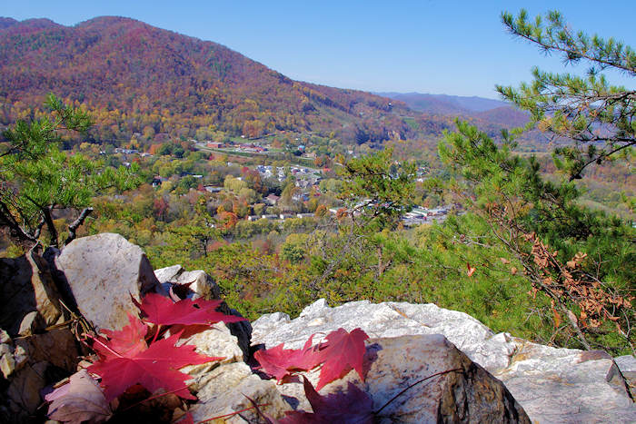 Stop along the way to enjoy the many cascades on the left side of the road. About four miles up the road is Walker Falls, the most impressive one (pic above). Read more about it. A few cascades have a place to pull off the road, so some nice spots for a tailgate picnic. Also find roadside camping spots along the way. When leaves are off the tree, you see the ridge ahead that is home to Craggy Gardens and the Blue Ridge Parkway.